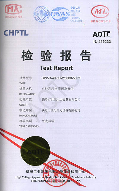 戶外高壓交流隔離開(kāi)關(guān)檢驗(yàn)報(bào)告