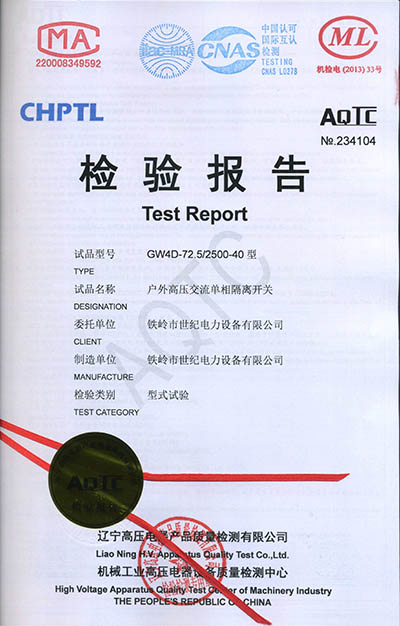 戶外高壓交流隔離開關(guān)檢驗(yàn)報(bào)告