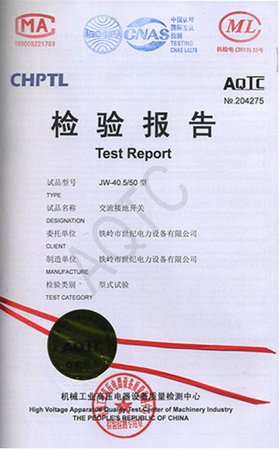 交流接地開關(guān)檢驗(yàn)報(bào)告